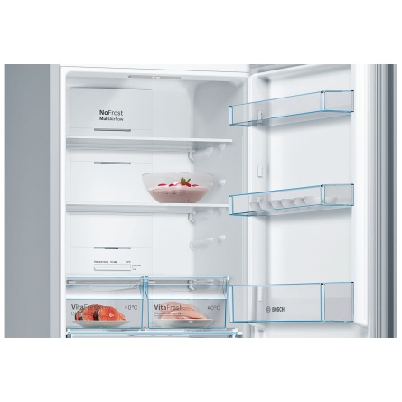 Bosch KGN36VL326 - це відмінний варіант для тих, хто хоче, щоб продукти зберігали свіжість та корисність протягом тривалого часу. Для цього він обладнаний сучасними системами рівномірного багатопотокового охолодження MultiAirflow, системою захисту від утворення бактерій AntiBacteria, а також функціями швидкого замороження та охолодження. Такі технології забезпечать найкращі умови для зберігання продуктів й подбають, щоб вони були свіжими, немов щойно з грядки.