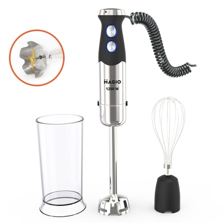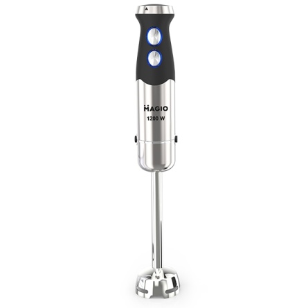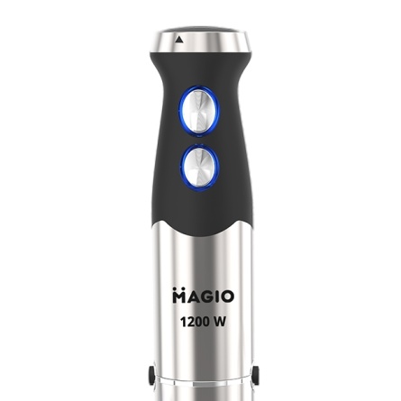 Блендерний набір MG-645 дасть вам змогу урізноманітнити ваше меню і приготувати новий кулінарний шедевр. Потужність блендера становить 1200 Вт, що забезпечує безшумну ефективну роботу впродовж тривалого часу. Заглибна частина зроблена з неіржавкої сталі, а ніж із титановим покриттям — запорука стійкості до зношування й довговічності. Ергономічна ручка з приємним покриттям SOFT TOUCH.