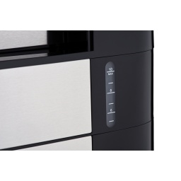 Корпус пристрою виготовлений з нержавіючої сталі з характерним металевим блиском, з пластиковими вставками чорного кольору. Матеріал максимально стійкий до подряпин і деформації, не боїться різкого перепаду температур, невибагливий в догляді і обслуговуванні.