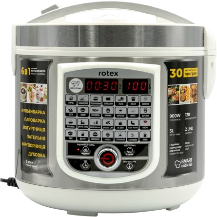 Мультиварка Rotex RMC505-W Excellence має 30 автоматичних програм і оснащена чашею 5 літрів з мармурово-керамічним покриттям.