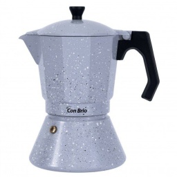 Принцип работы гейзерной кофеварки Con Brio прост: пар в нижней части достигает высокого давления и постепенного вытесняет кипящую воду через воронку и фильтр, в котором находится молотый кофе. Вода проходит через молотый кофе и попадает в верхний резервуар, где собирается готовый напиток.