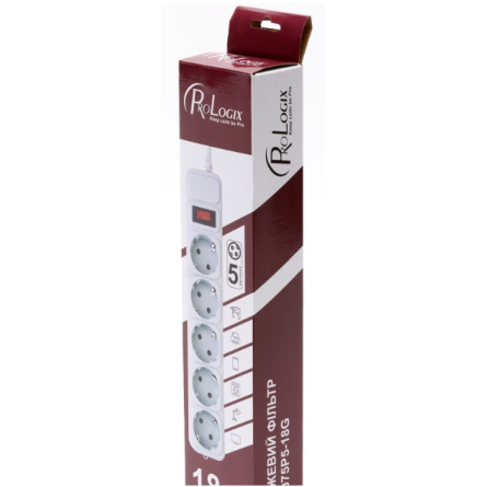 Мережевий фільтр Prologix PRS-075P5-18G 0.75 мм, 5 розеток, 1.8 метра
