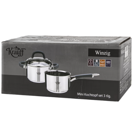 Набір посуду Krauff Winzig 26-286-005 виготовлений із високоякісної нержавіючої сталі, що гарантує тривалий термін служби та чудові експлуатаційні якості. Посуд із нержавіючої сталі не окислюється і легко миється. Великі та зручні ручки каструлі виконані з нержавіючої сталі.