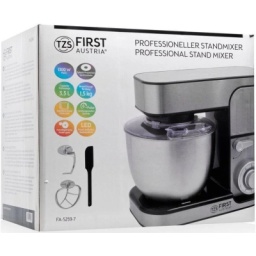 Для ефективного замішування тіста та збивання крему оптимальним варіантом стане міксер First FA-5259-7. Потужний стаціонарний прилад швидко і легко впорається зі своїми робочими завданнями, для чого його конструкцією передбачені гак для тесту, віночок для збивання, насадка для змішування. Стійкий корпус і чаша об'ємом 5 л з нержавіючої сталі дозволять замішувати тісто до 1.5 кг вагою. First FA-5259-7 – власник 6 швидкостей для найефективнішого процесу. Є й імпульсний режим.