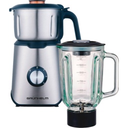Стационарный блендер Grunhelm EBS-1252-TGS – качественная модель с высокой мощностью 1200 Вт. Чаша блендера изготовлена из термостекла, объем 1200 мл. Стационарная конструкция дает возможность работы с блендером без помощи рук. Для удобства и безопасности использования предусмотрены двойной предохранитель, резиновые ножки, защита от перегрева. В блендере присутствует измельчитель, его емкость 500 мл. Есть 3 режима скорости.