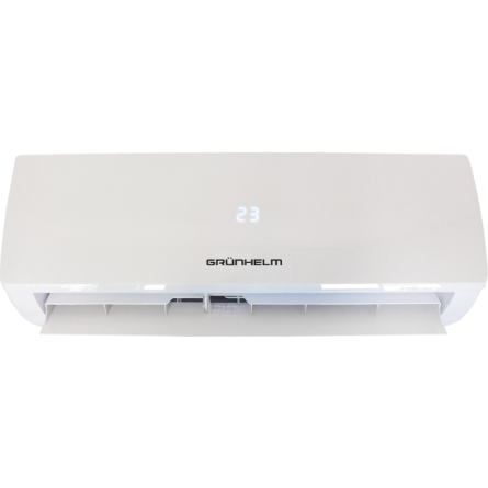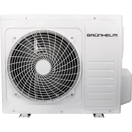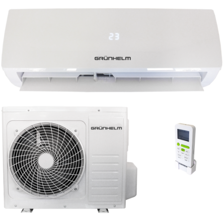 Спліт-система GRUNHELM GAC-09GH-Iпрацює від звичайного мотора, де внутрішній блок встановлюється на стіну в приміщенні площею до 25 м2, а зовнішній на вулицю, при цьому довжина магістралі може досягати максимально 15 м. Електронний дисплей з відображенням функцій та температури керується дистанційно. Використовується безпечний для озону безхлорний фреон R410A, який є у вільному доступі. У конструкції використовується перевірений якісний компресор RECHI. Теплова продуктивність становить 2800 Вт за умови споживання 770 Вт, холодильна 2640 Вт за умови споживання 820 Вт. Кондиціонер GRUNHELM GAC-09GH-I працює в режимах охолодження, обігрів, вентилятор, автоматичний, сушіння, ЕКО, турборежим. Варто також відзначити, що є самоочищення, рестарт, запам'ятовування налаштувань. Діапазон робочої температури +54/-17°С, потужність BTU становить 9000.особливості: