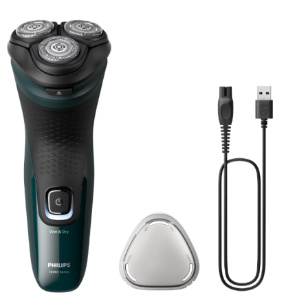 Насолоджуйтеся зручним сухим чи освіжаючим вологим голінням з улюбленим гелем або пінкою біля раковини чи в душі.Вбудований тример для вусів та бакенбардів